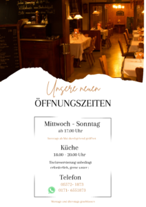 Nur mit Tischreservierung 18:00 Uhr bis 20:00 Uhr